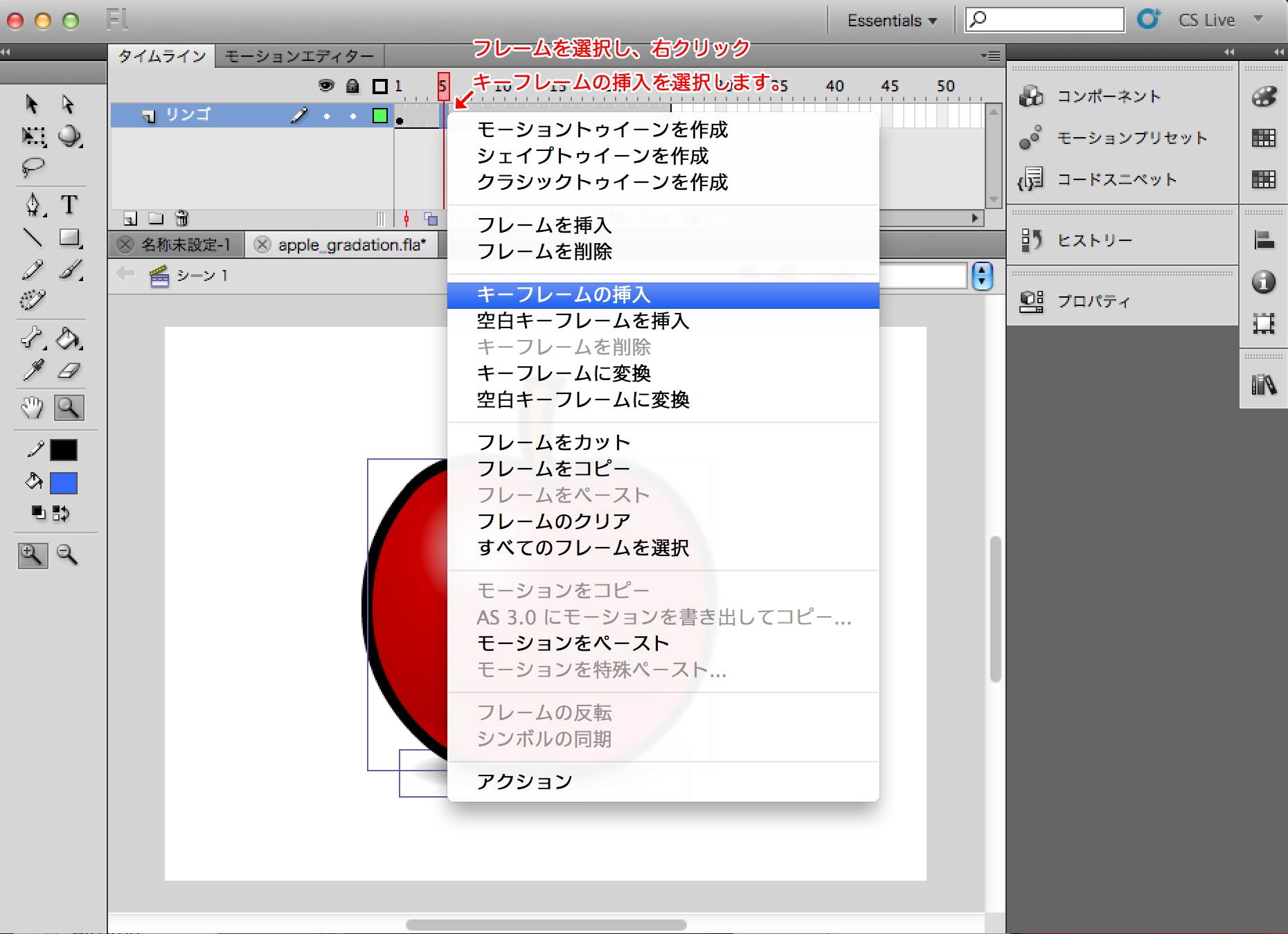 ぱらぱらマンガで言うページのことをAnimateではキーフレームと言います。